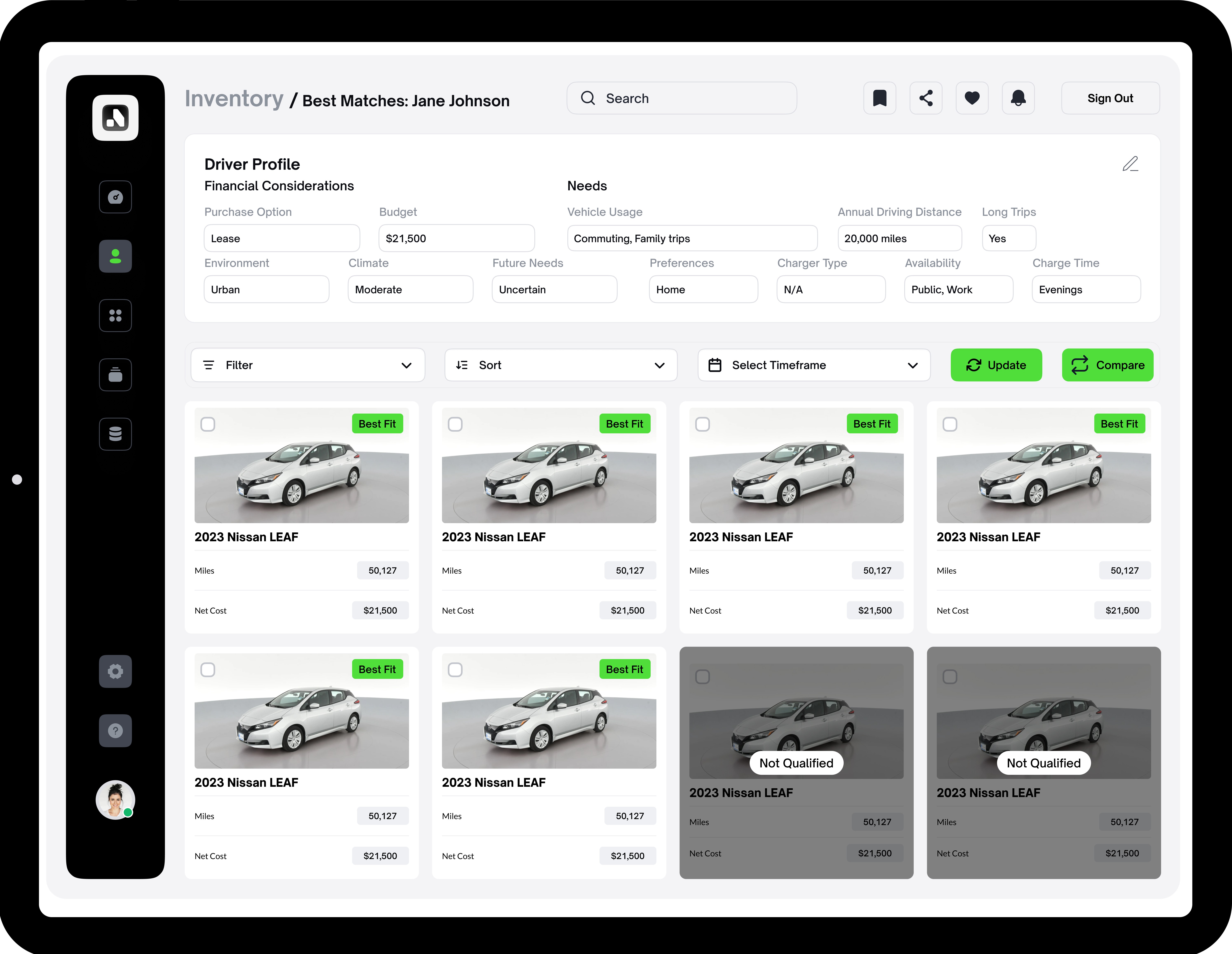 Based on our research, we collaborated with the Nissan team to develop three proto-personas to serve as user examples for the workflows and mockups.